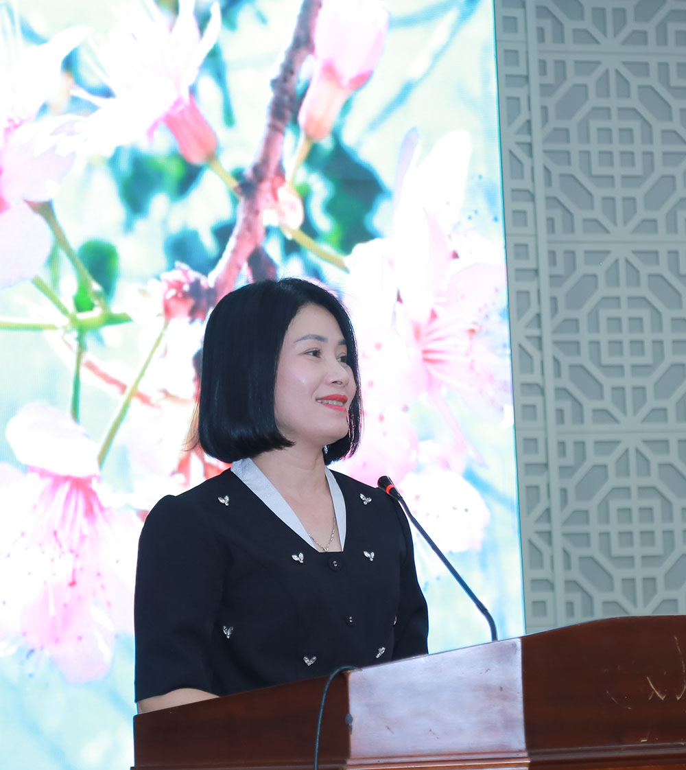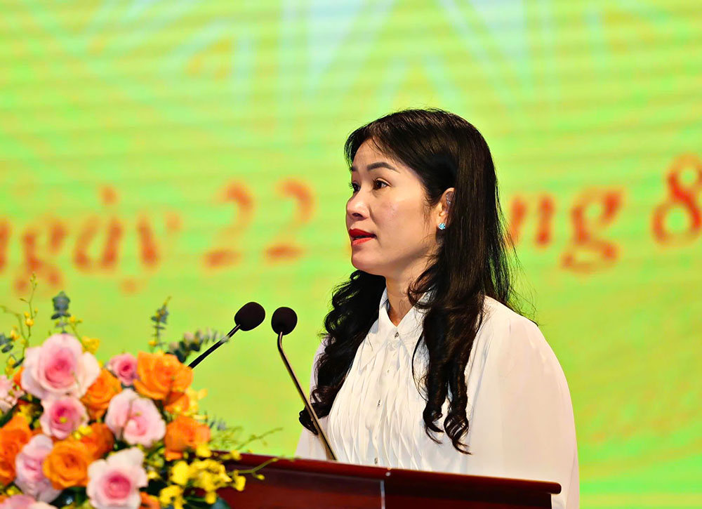 Giám đốc Sở GD&ĐT Lê Thị Bích Liên báo cáo tại Hội nghị Tổng kết năm học 2024-2025