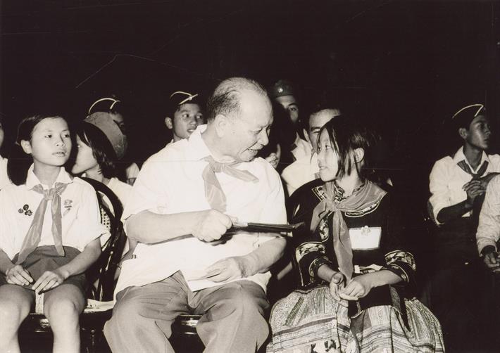 Chủ tịch Hội đồng Nhà nước Trường Chinh nói chuyện thân mật với các đại biểu thiếu nhi về dự Đại hội Cháu ngoan Bác Hồ toàn quốc lần thứ I tại Phủ Chủ tịch (ngày 21/8/1981)