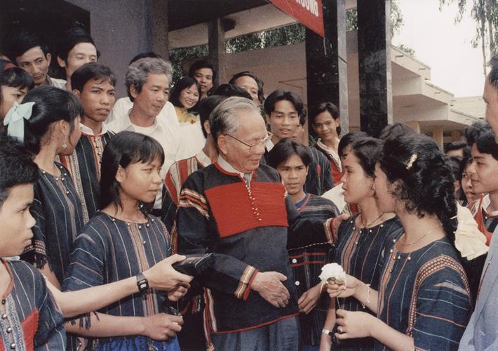 Chủ tịch nước Lê Đức Anh thăm hỏi các cháu học sinh Trường Phổ thông dân tộc nội trú tỉnh Đắk Lắk (năm 1996)