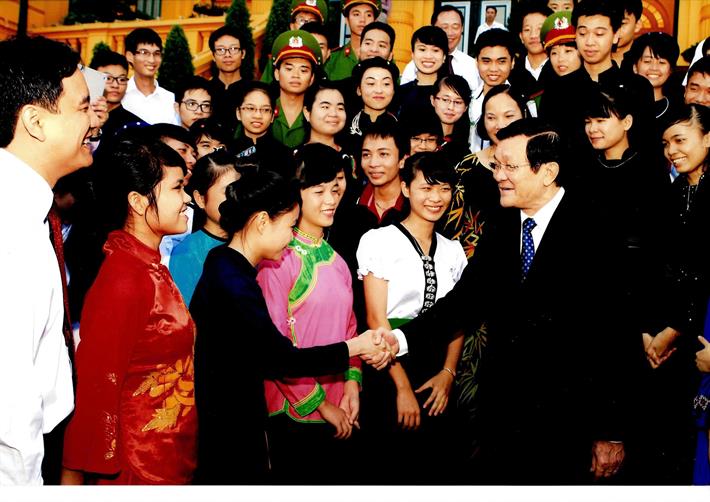 Chủ tịch nước Trương Tấn Sang gặp gỡ, trò chuyện với các em học sinh, sinh viên dân tộc thiểu số tiêu biểu tại Phủ Chủ tịch (ngày 01/11/2014)